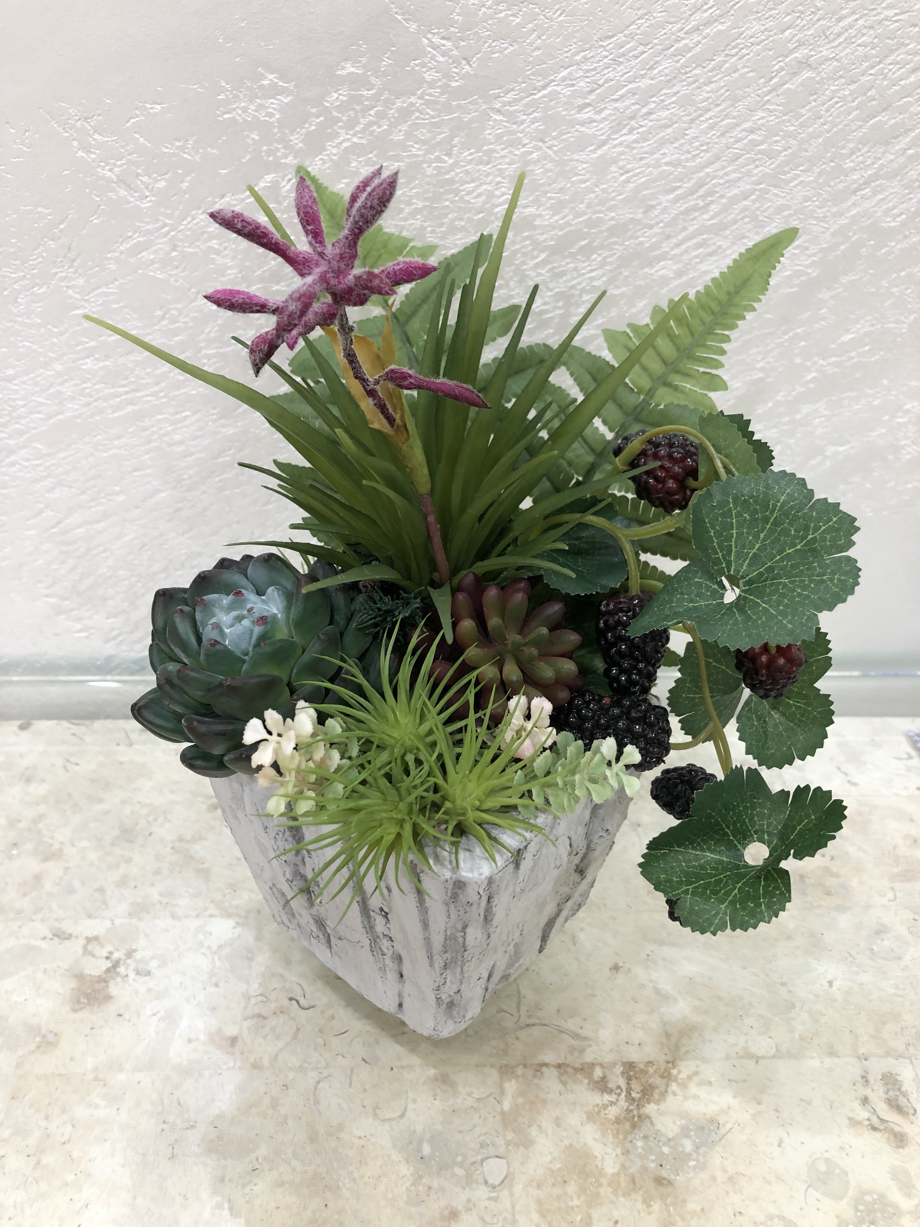 多肉植物やブラックベリーを合わせたアレンジメント。